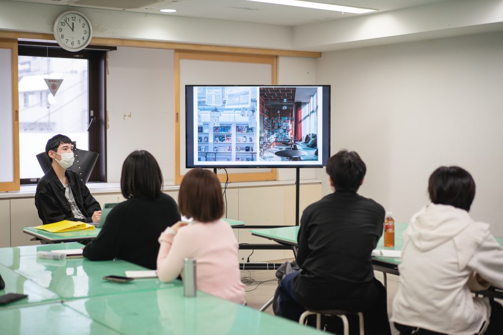 大森講師「旅行で特に注力するのは、ホテル選びです。そこで、『ホスピタリティブランド』×『デザイン』領域での求人はないか?のぞいてみました。ホテル直属のデザイナーやプロモーション職もあることを知り、デザイナーズゲストハウスの正社員として採用していただきました。ゲストハウスをどのようなブランドとして見せて、感度の高い層に『カッコいい!』と思ってもらえるのかを考えて仕事をしています」