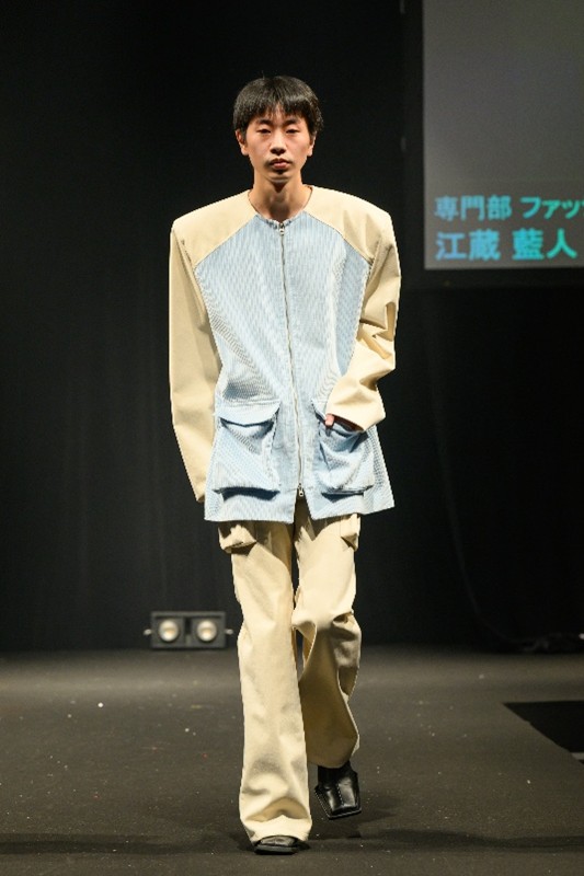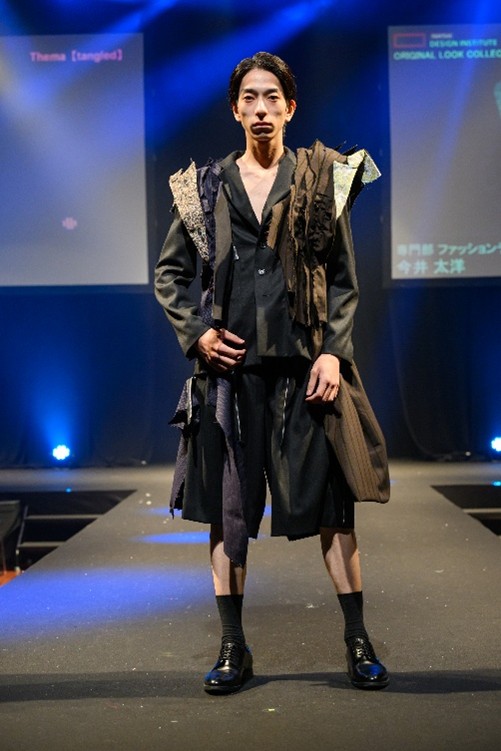 右「Caymoss Wanger」(専門部 ファッションデザイン専攻2年・江蔵 藍人さん)