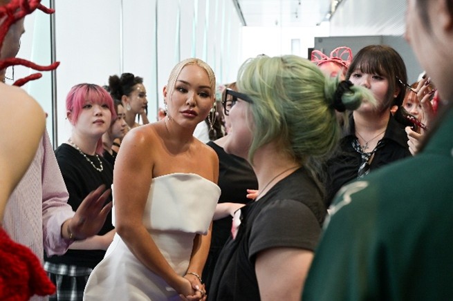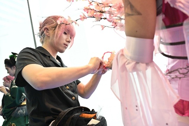 審査員・メイクアップクリエイター/コスメブランドプロデューサー・マリリン様「ステージ前から見ていましたが、登場した瞬間から鳥肌が立ちました。作品から伝わる想い、日本のカルチャー、色使いまですべてがパーフェクトだと感じました。頑張ってきたんだろうな、ということが初めて見る私にも伝わり感動しました。すごく素敵なものを見させていただき、ありがとうございます」