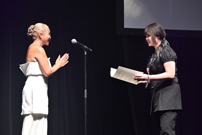 審査員・フォトグラファー ・Yu Nagatomo様「全体のバランス、モデルさんに合っているかどうかも見れていました。将来はすごいヘアメイクアーティストになると思います。お仕事をご一緒できることを楽しみにしています!」とメッセージ。