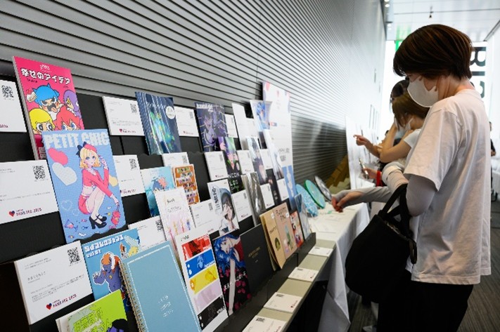 2年次メンバーが「コミティア」出展を目指し、オリジナルコミック冊子を制作。ポップな作風から幅広いテイストが揃い、来場者が自由に手に取って閲覧できる仕組み。