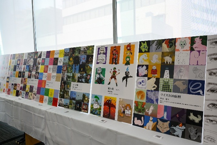 1年次メンバーが100枚のドローイングを制作。展示ではその一部が公開され、K-POPアイドルや猫、擬人化、映画のワンシーンなど、個性豊かな表現が並びました。出展メンバーは「100枚描くことで、自分の得意な表現が見えてきました」と話します。