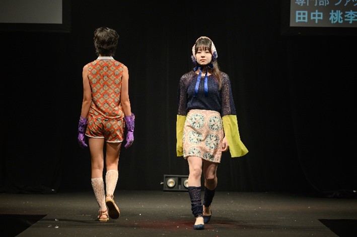 左「YUKU」(専門部 ファッションデザイン専攻2年・黒田 宥さん)