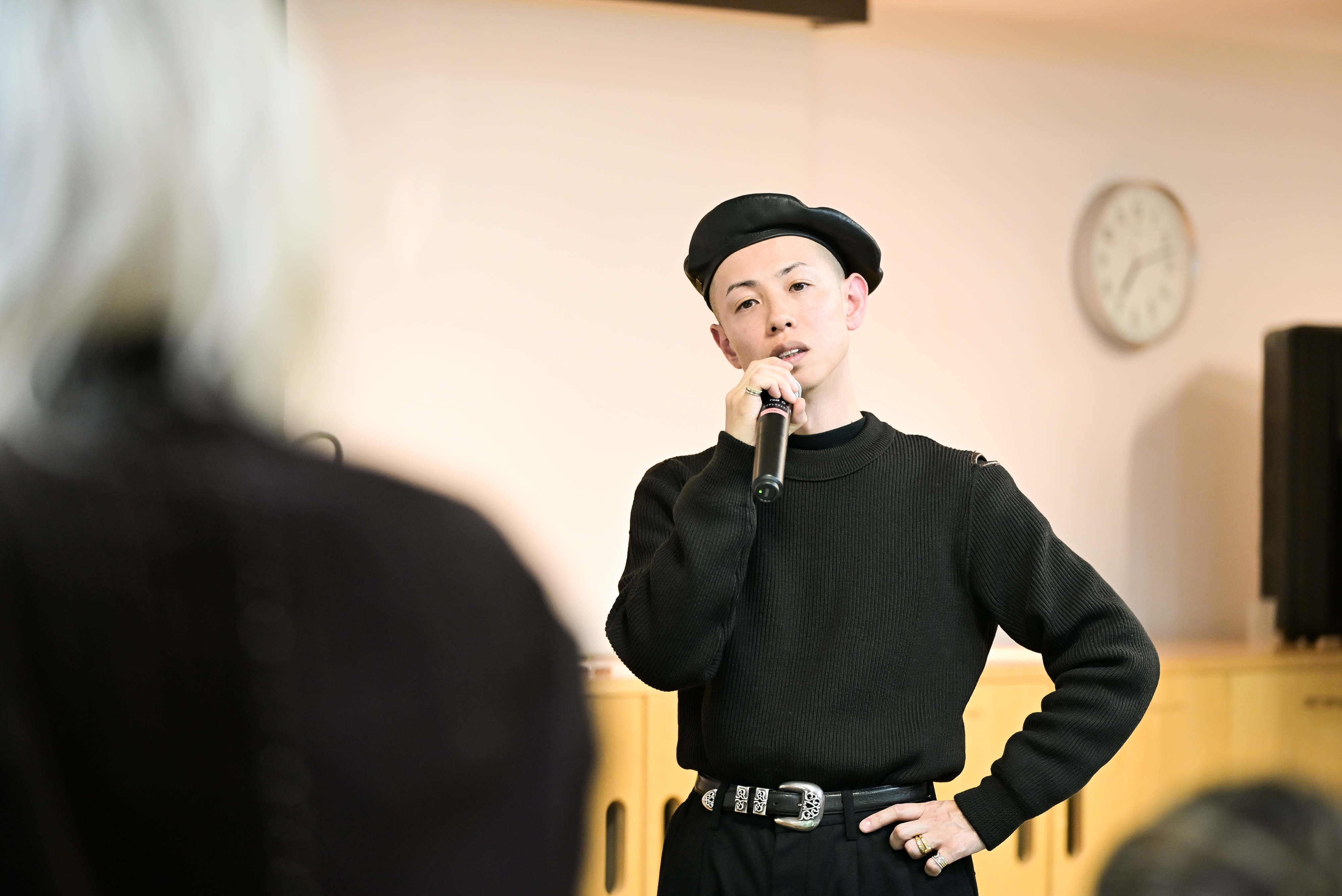 TEPPEI講師「誰に対して服を作っているか?が興味の対象です。媚びている服はあんまり好きではありません。媚びないというのはすごく大変です。貯金を崩しながら、売れるかわからず制作しているデザイナーは孤独だと思います。20年ちかく服を見てきた自負がありますから、自分が注目することで手を差し伸べられるのではないか。僕は良いときは良いと言いますし、辛辣に言うときもあります。いまで言うと『TTTMSW』、『TSTS』は誠意をもってものづくりをしていると思います。そうしたブランドの強度を上げていきたいので、定期的にミーティングをして、ルック撮影を担うこともあります」