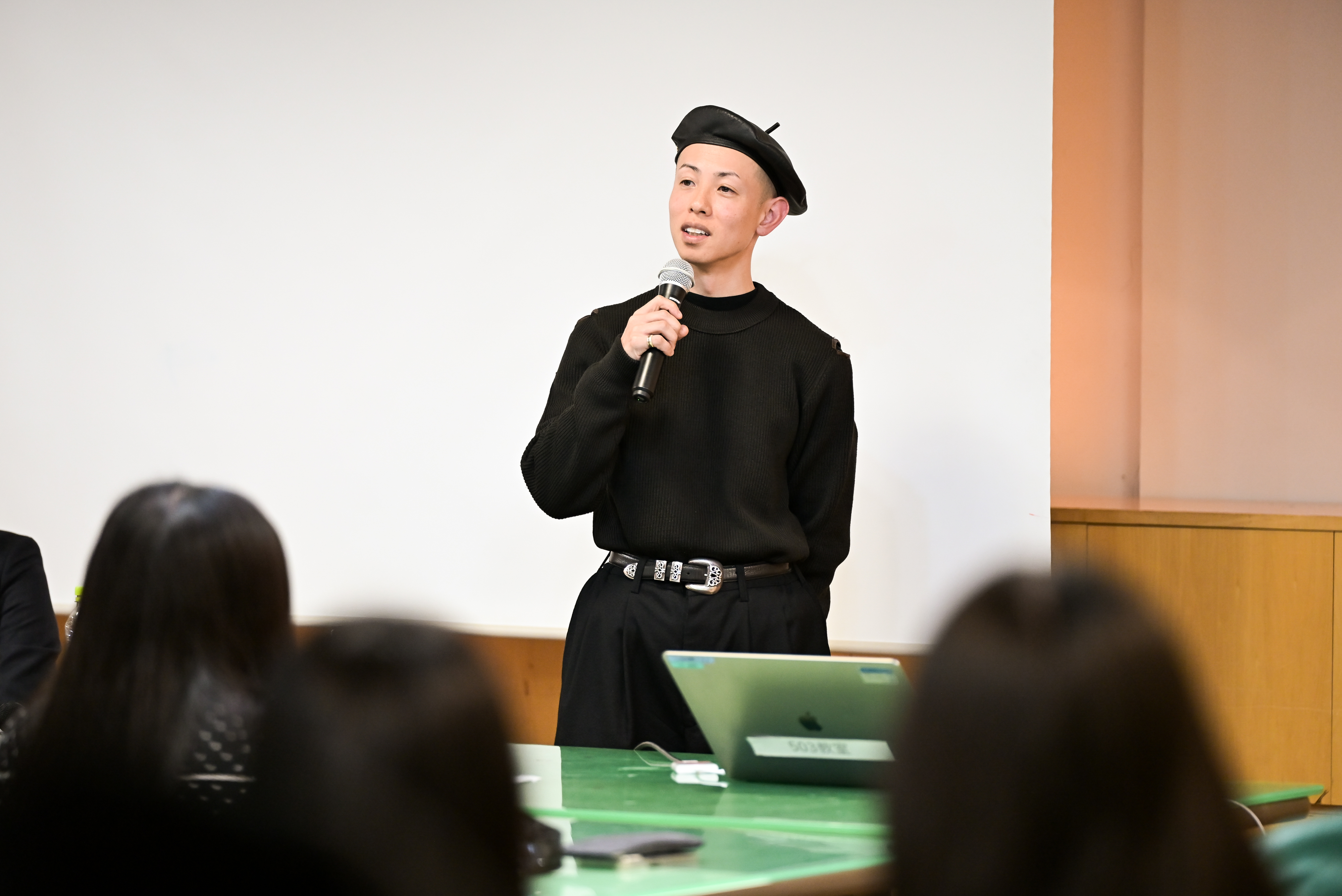 皆さんが抱いている悩みをどう許容して、楽しさに変換していくのか?クリエイションを見た人、受け取った人に、楽しい・ハッピーをシェアできることは、この仕事の喜びであることは間違いありません。ただただ楽しさがあるとは、申し上げられません。でも、救ってくれたのもまたファッションです。シビア・シリアスなことを言いましたが、引き続き良い学校生活を送られてください。応援しています!」と、一つひとつの言葉を真摯に選び、締めくくりました。