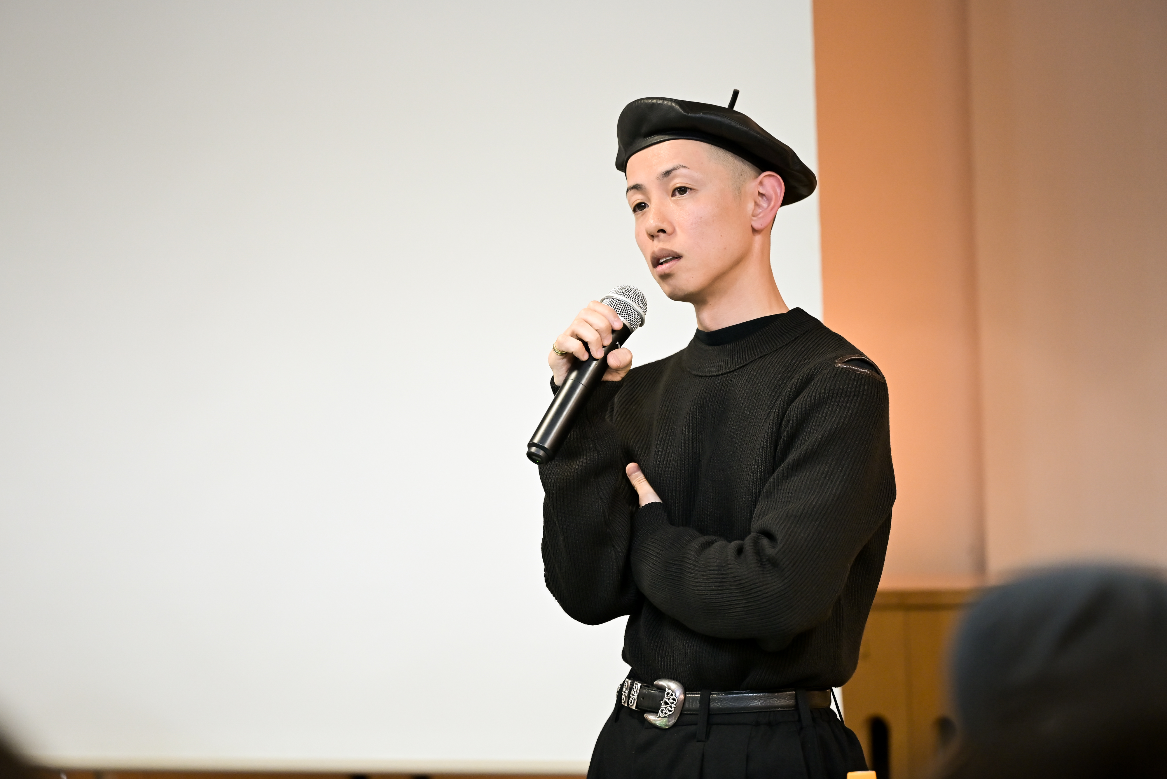 TEPPEI講師「10年ほど、1年に10日ほどの休みで、凄まじい仕事をしてきました。しかし、7月にオーバーワークで体調を壊しました。蕁麻疹もあり1日15分睡眠で、仕事とは何か、キャリアとは何か、クリエイションとは何かを自分に問いただしました。結果、『人のために生きすぎていた』という結論になりました。クリエイティブディレクターとはサービス業だ、と思っています。クライアントに応えることが、自分の価値だと思っていました。ですが、自己犠牲が過ぎていて、自分を思いやるかけらがありませんでした。「仕事ができなければ生きる価値もない」から、「少なくともファッションを通して自分が楽しんでやることが、人のためになるといい」という変化が心に生まれました。