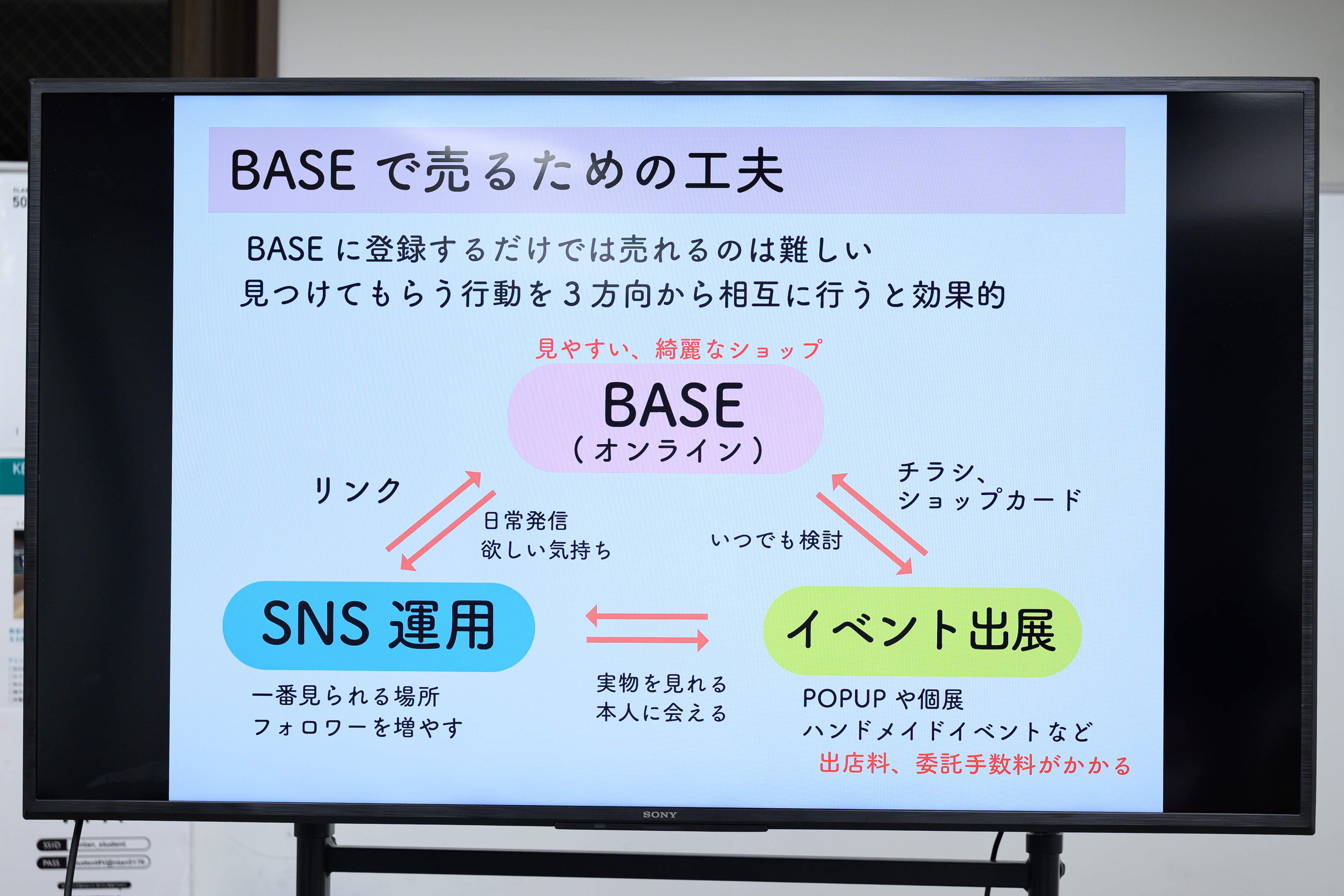 yukino講師「『BASE』はストアフロント型のサービスのため、ネットショップを開設するだけで商品が自動的に売れるわけではなく、集客や販促活動が重要になります。
