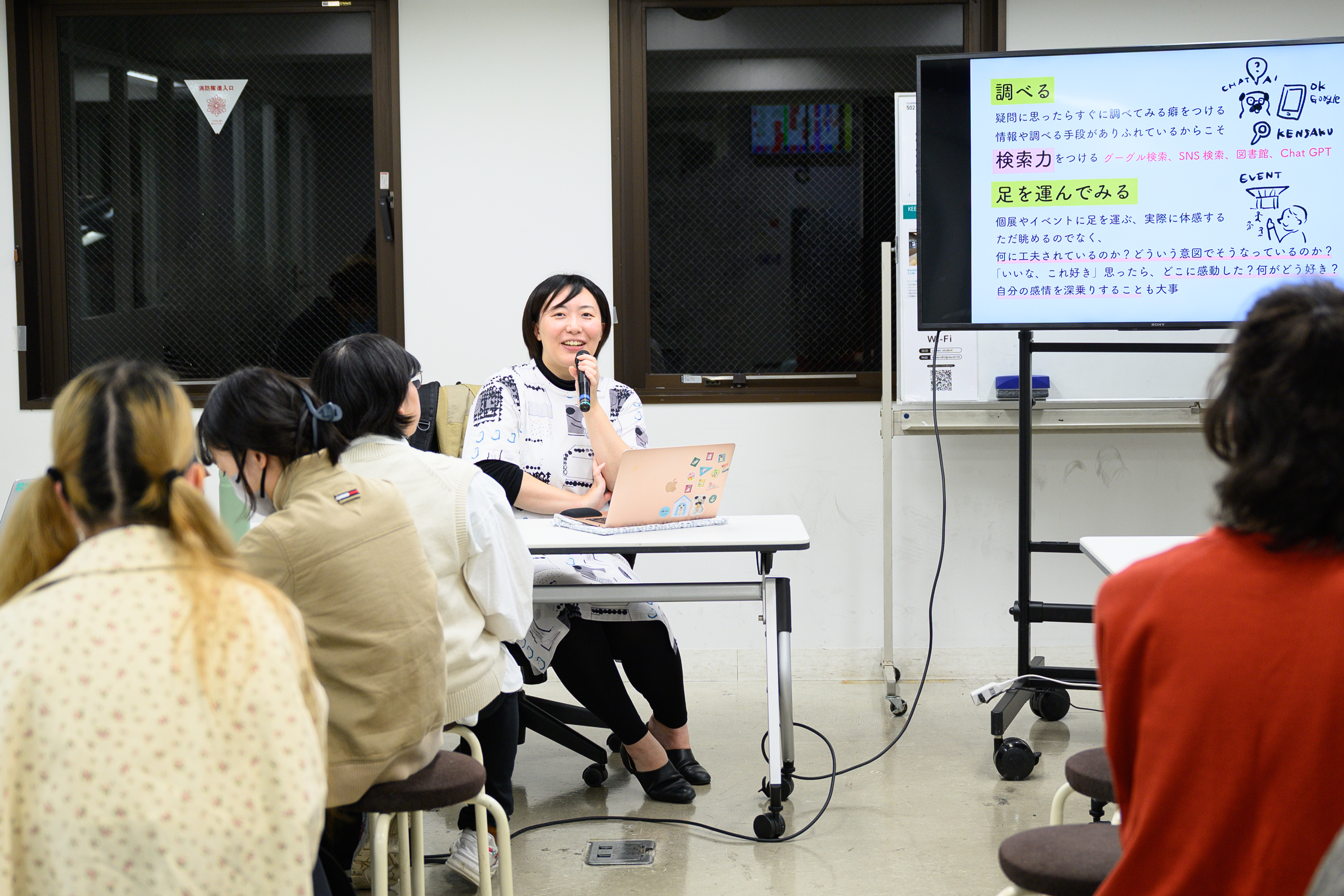 yukino講師「進路に悩んだら、まずは就職して、各部門の仕事を理解するのがオススメです!フリーランスは、営業、経理、スケジュール管理、原価設定などをすべて1人でやらなくてはなりません。企業勤めは、労務管理や業務設計が適切に行われている場合、基本的に定時で帰れます。副業ができる企業なら、土日にものづくりをすることができます。フルタイムや派遣社員として働きながら、何万人もフォロワーがいるクリエイターもいます!フリーランスで成功している人は、選ばれ待ちをせずに選ばれる工夫をしています。例えば、自分らしさをSNSに込めています。また、圧倒的に行動しています!」
