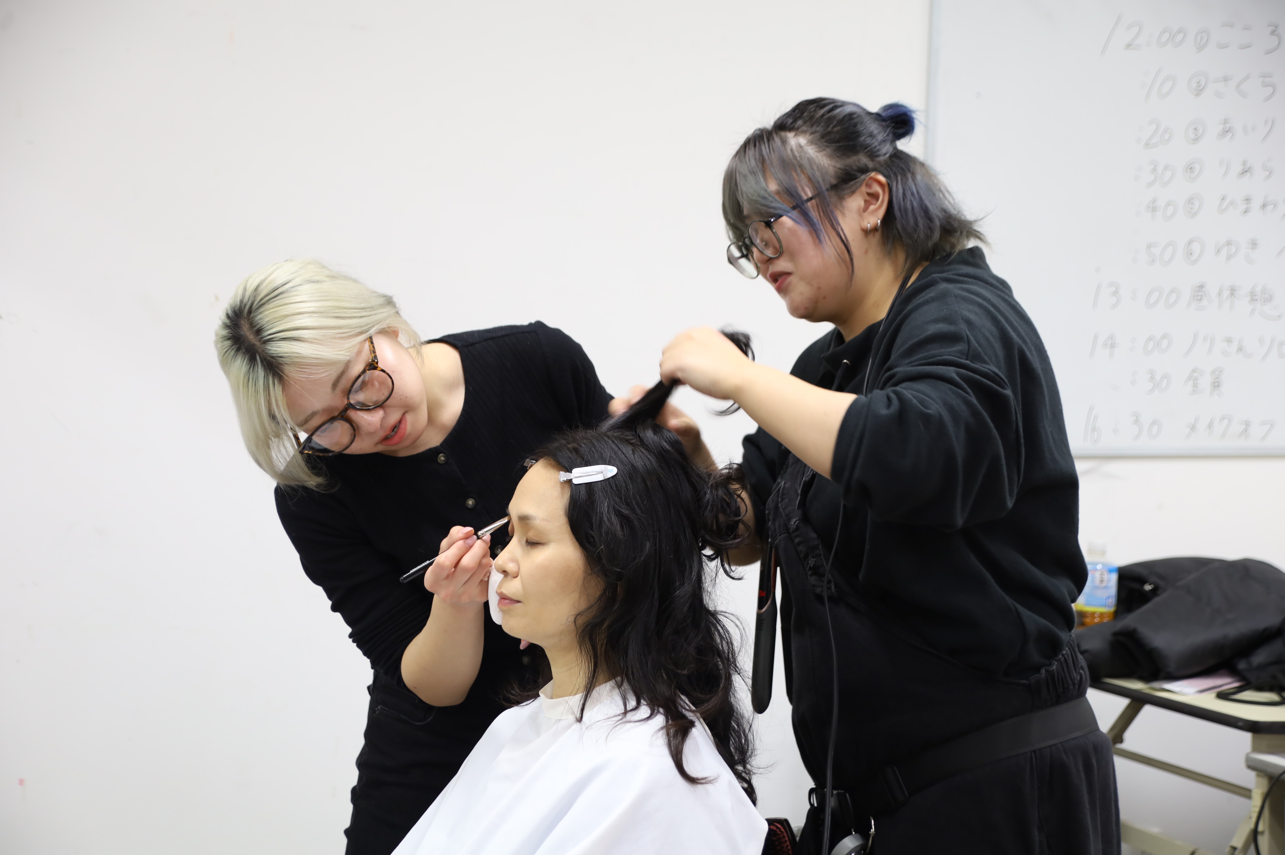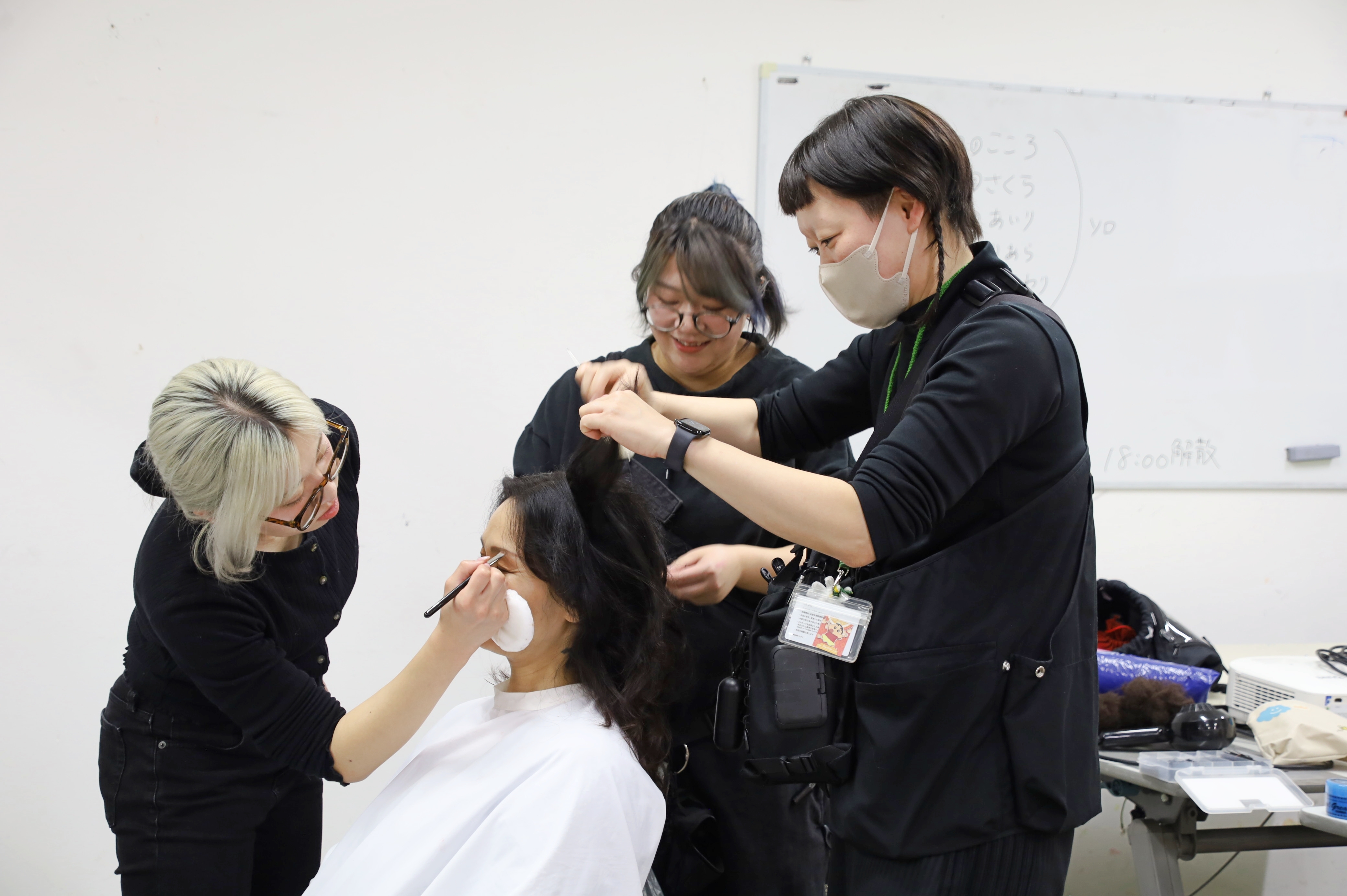 この日の撮影に向けて準備を重ねてきたヘアメイク学科専門部2年生たちの当日の様子をレポートします♪