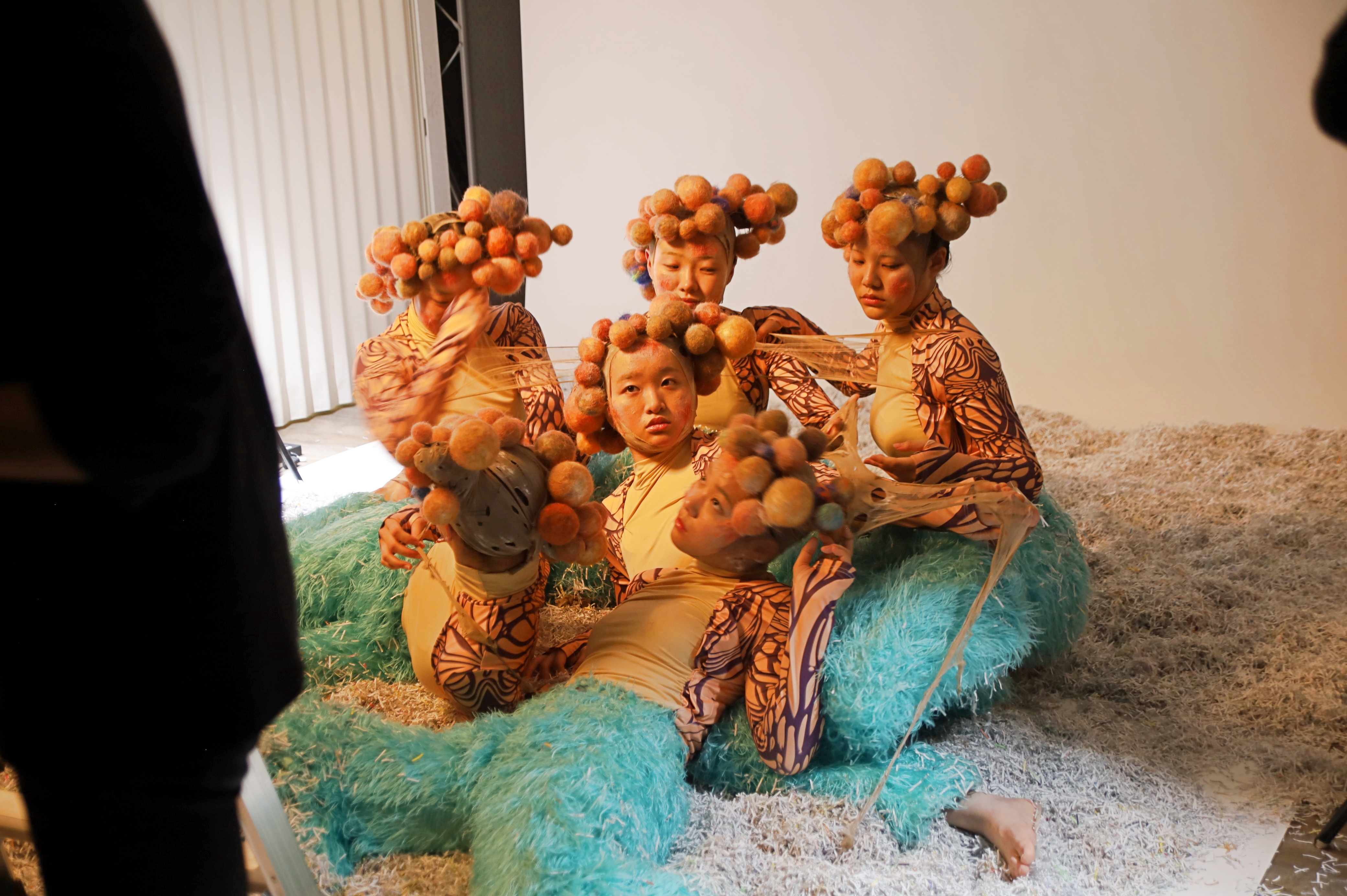 「玉がめっちゃふわふわしていて可愛くて、クリエイティブな感じが気に入っています。ヘアメイクがアートな感じなので、元々打ち合わせしていたポージングに加えて、アートな感じに見えるように、ポージングを考え直しています」
