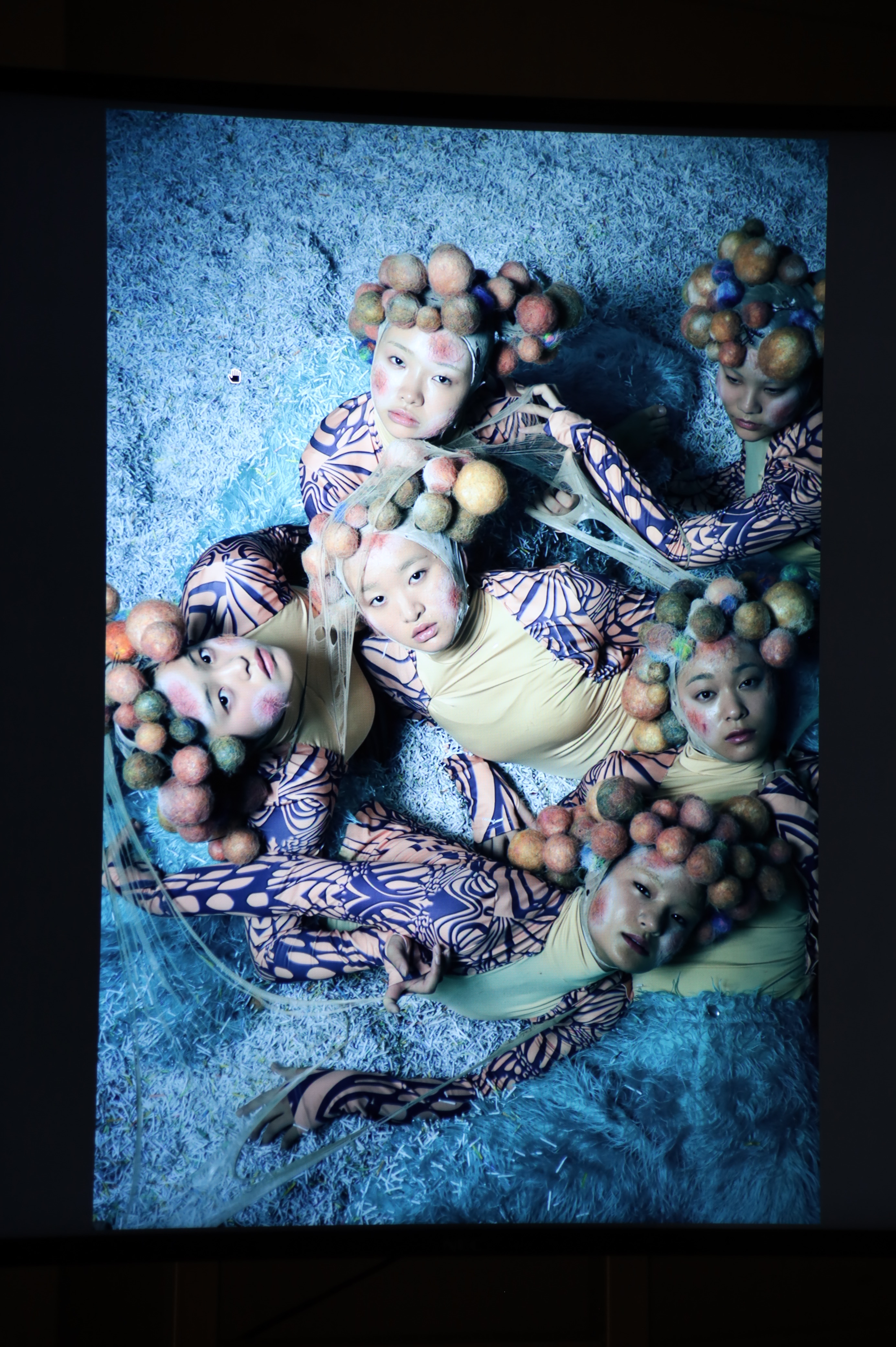 シバハラさん「今回、衣装のダンスのテーマが『ルーメン』で、光の束という意味だったので、そこからみんなで繊維やカビといった質感を想像していきました。こだわりはN'ismさんのカッコいいイメージを覆すために、黒を使わずカラフルにしたところです」