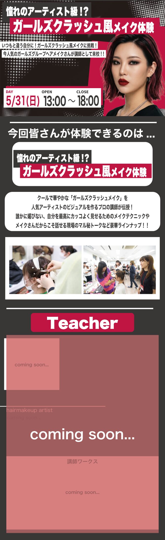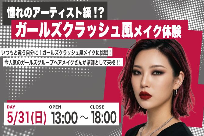 ◆体験授業◆憧れのアーティスト級!ガールズクラッシュ風メイク体験【ヘアメイク分野】